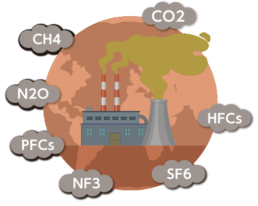 ※フロンガス類はハイドロフルオロカーボン類(HFCs)、パーフルオロカーボン類(PFCs)、六フッ化硫黄(SF6)、三フッ化窒素(NF3)に分類できます。