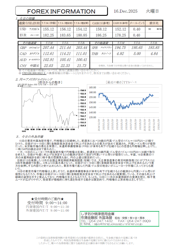 詳しくは、しずおか焼津信用金庫市場金融部まで、お気軽にお問い合わせください。
