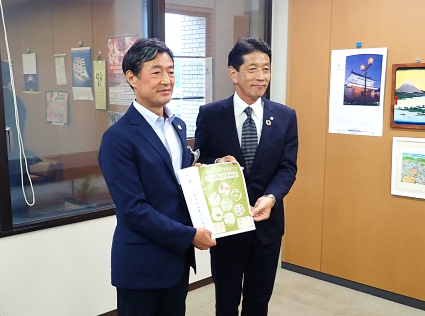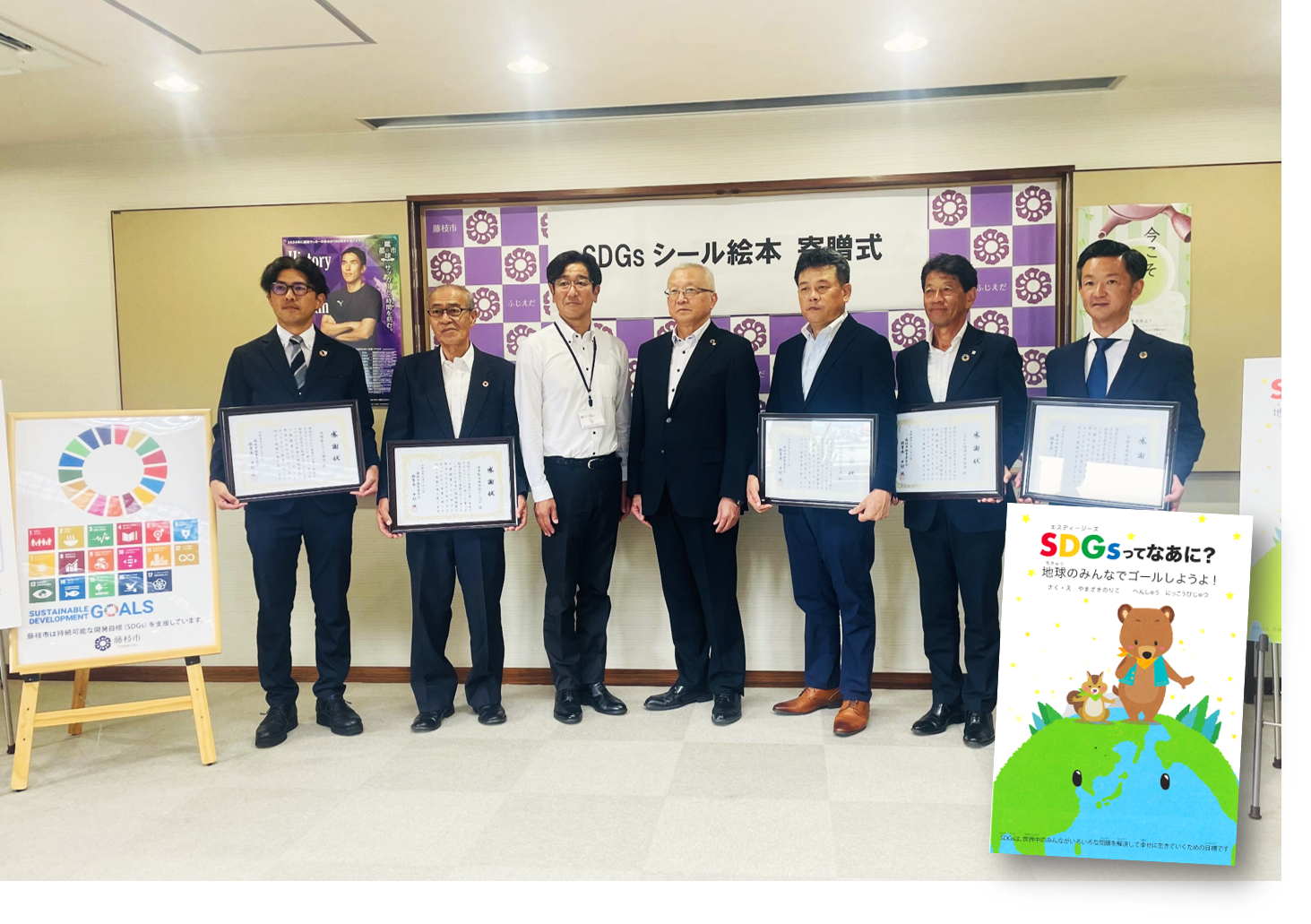 8月28日(月)、藤枝市役所にて、藤枝市へSDGsシール絵本を寄贈する贈呈式を行いました。