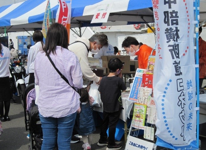 4月2日(日)、焼津市の漁港三大祭りの1つ、「焼津みなとまつり」が開催されました。当日は、天候にも恵まれ大勢の来場客で会場は賑わいを見せました。当金庫もブースを出店し、お子様向けゲーム「たねココ スタンプラリー」を実施するとともに、当金庫を紹介する映像の放映および「しんきん中部横断道コネクト」の周知、各信用金庫を通じて提供を受けた地域情報冊子、観光紹介等リーフレットを配布しました。
