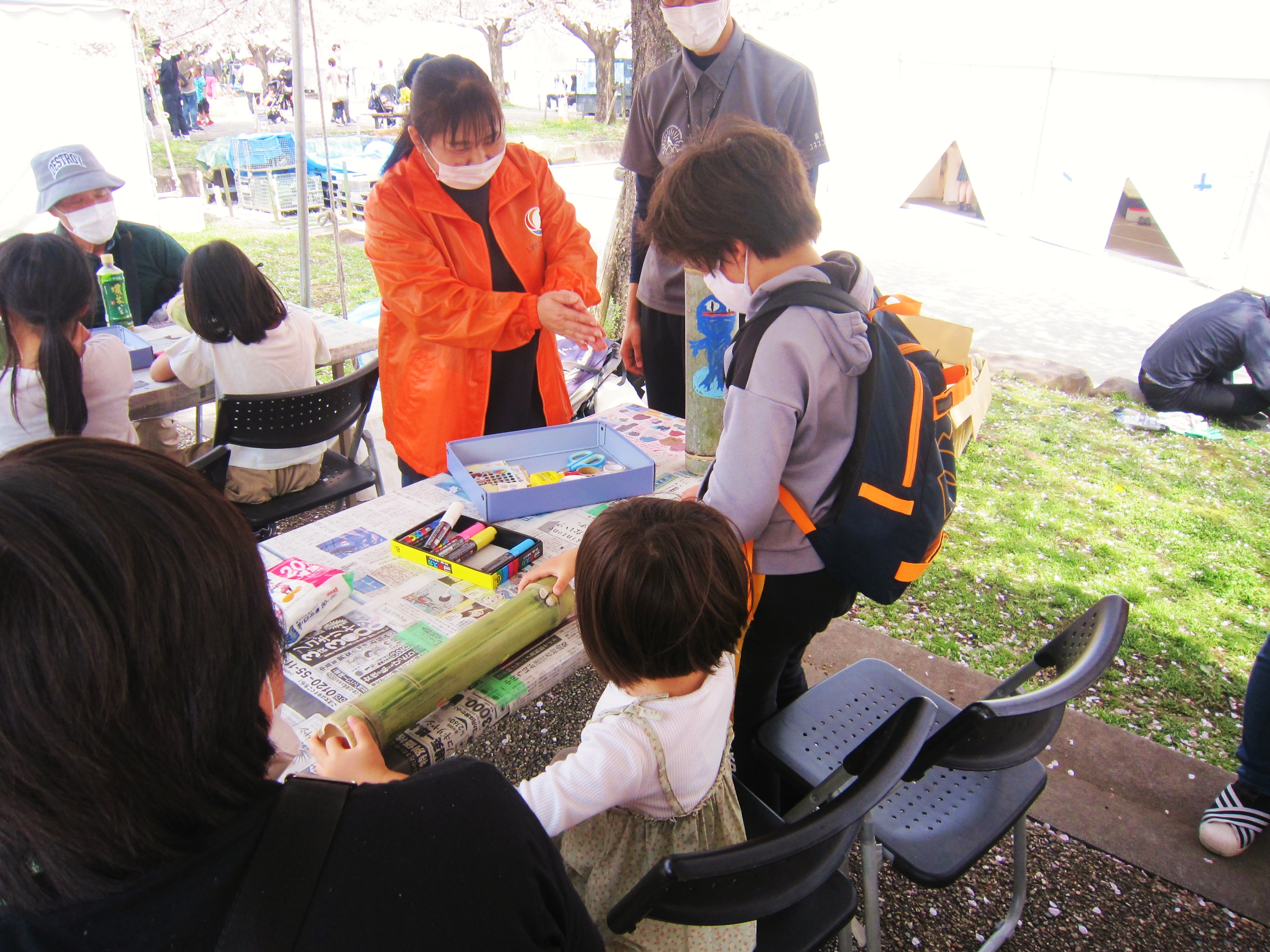 4月1日(土)~2日(日)第67回静岡まつりが開催され、当金庫は静岡市環境局と共同で竹の貯金箱づくりのブースを出展しました。当日は両日とも天候に恵まれ、多くの来場客でにぎわっていました。