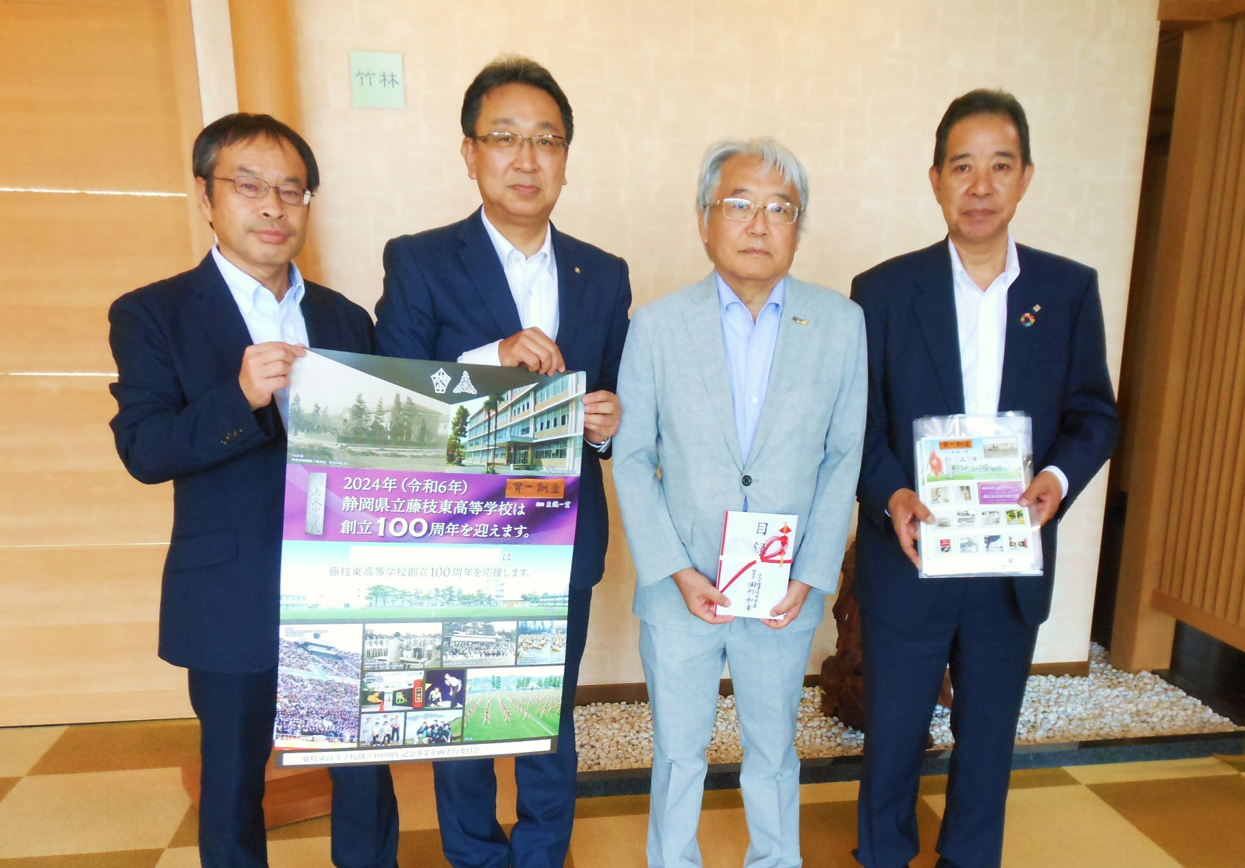 藤枝東高等学校が来年創立100周年を迎えることを記念し、当金庫から創立記念事業の一環として募金を行い、7月14日(金)、小杉苑(藤枝市)にて目録の贈呈を行いました。