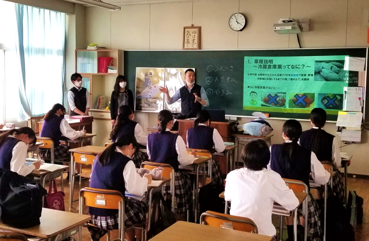 当金庫のお取引先10社が講師を務め、みらい探求系列・情報実務系列・生活環境系列・福祉介護系列の3年生計60人の生徒が参加しました。