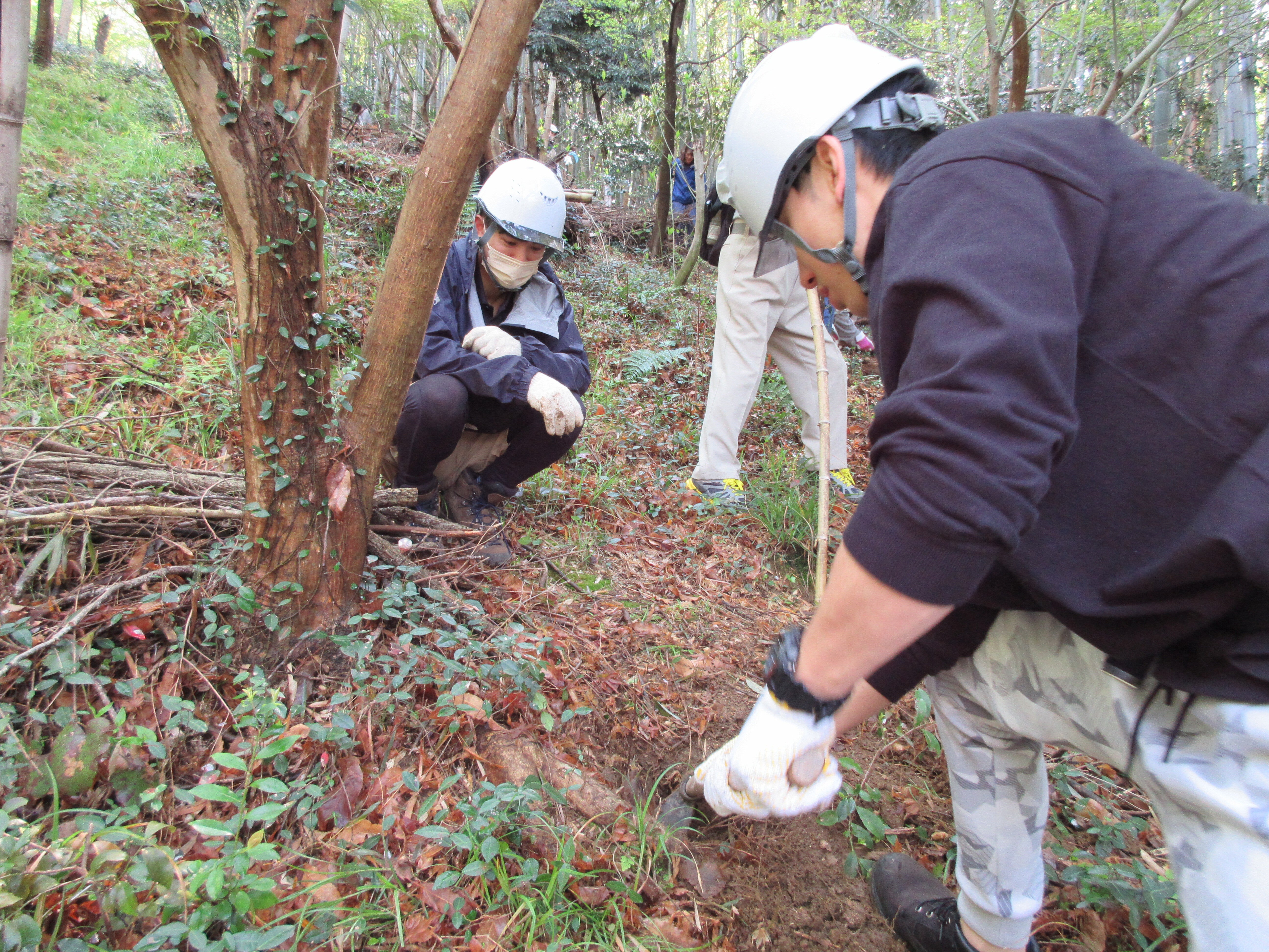 職員及び家族含め40名が参加し、下草刈り等の整備活動や、たけのこ堀りを楽しみました。