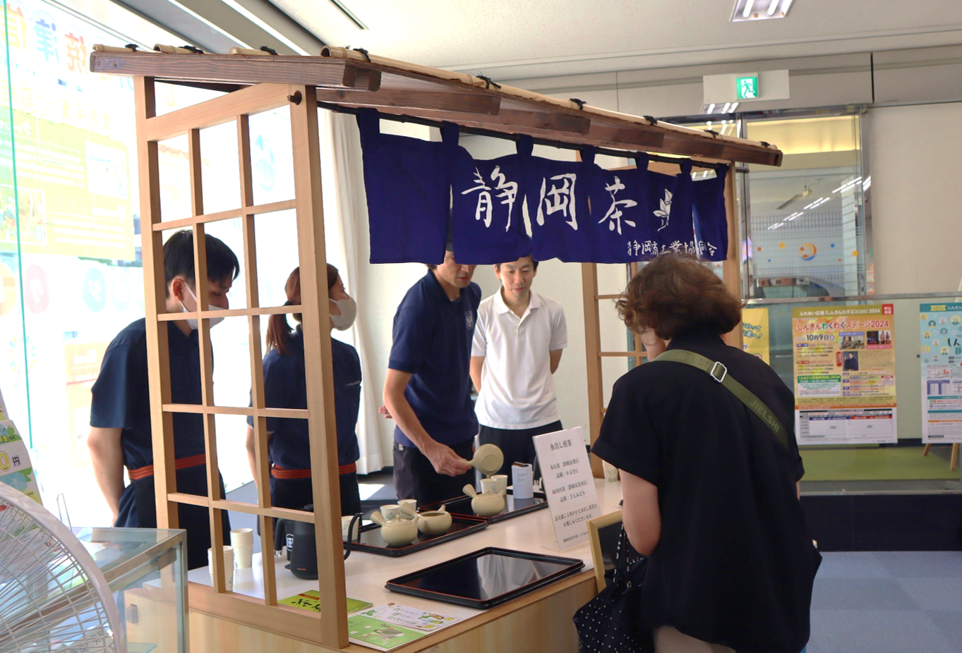 暑い中、涼しいロビーでプロの淹れた冷たい緑茶を楽しめることができ、お客様から大変ご好評をいただきました。