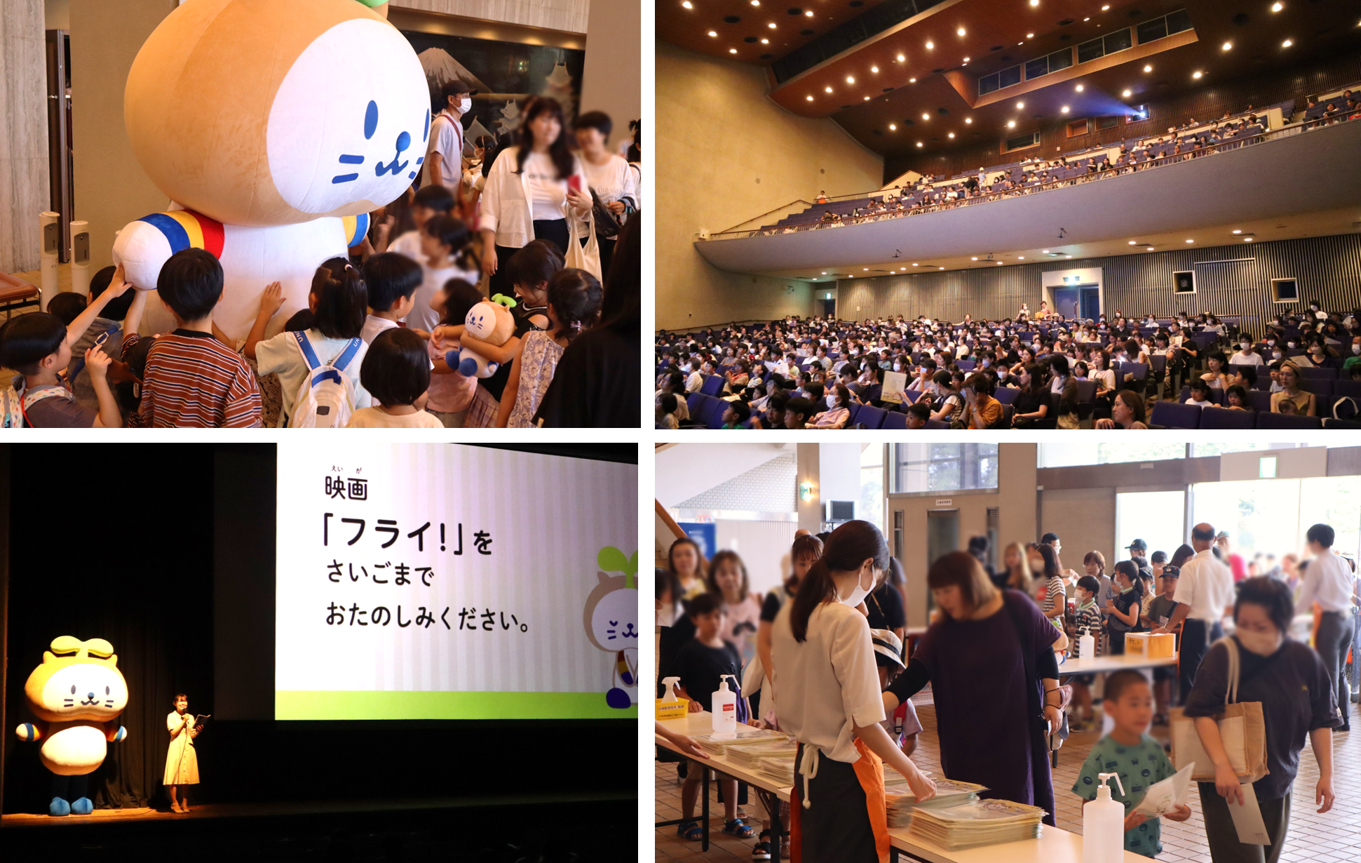 当日は午前の部・午後の部合わせて1,402人の方にご来場いただき、映画「フライ!」をお楽しみいただきました。また、当金庫のキャラクター「たねココ」の着ぐるみも登場し、来場者には「たねココ」の各種オリジナルグッズをプレゼントしました。