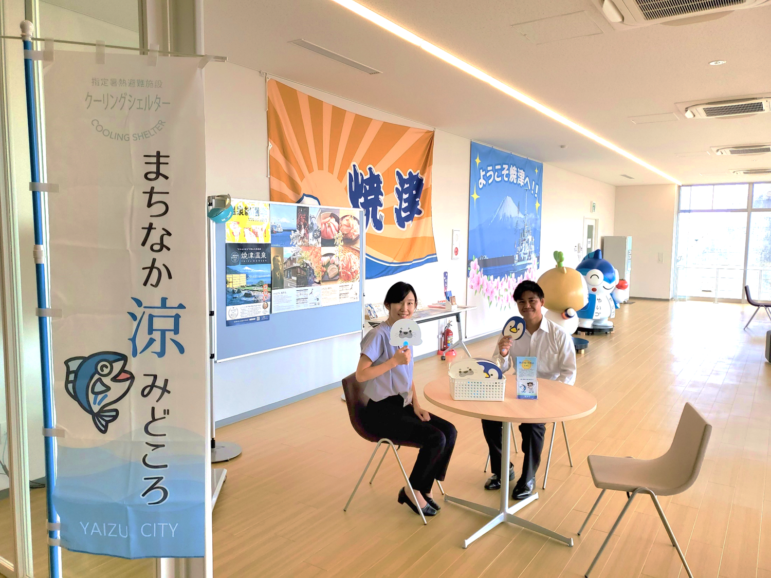 9月30日(月)まで(※)の営業時間中、焼津市内1店舗(さかなセンター支店:受入可能人数8名)、藤枝市内1店舗(藤枝駅支店:受入可能人数6名)の一部を一般に開放し、指定暑熱避難施設(クーリングシェルター)としてご利用いただきます。