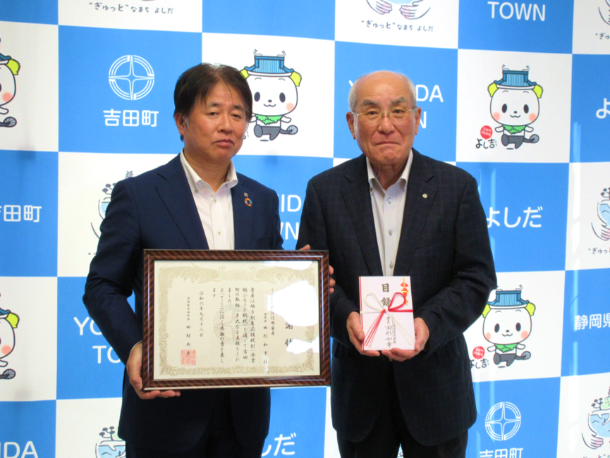 安定した雇用を創出する事業に活用していただくことを目的に、企業版ふるさと納税として吉田町へ寄附を行いました。今回の寄附は、町の地方創生の取組みを企業が応援する地方創生応援税制を活用したものです。