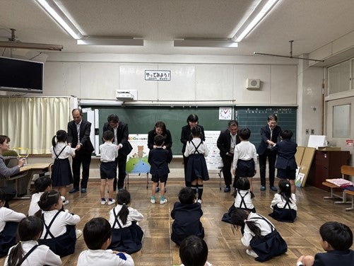 11月5日(水)、焼津市立焼津東小学校にてSDGsシール絵本の贈呈式が行われ、当金庫を含む代表企業6社が参加しました。当日は、代表児童6人にSDGsシール絵本を手渡し、児童からは感謝の言葉をいただきました。 シール絵本は焼津市内の各小学校1年生に寄贈され、授業や家庭で楽しんでいただくために活用されます。