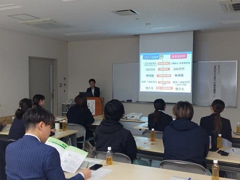 11月6日(木)、当金庫まるせい営業部にて「焼津まちなかゼミナール」の一環として「金利のある世界での資産運用!」講座を開催しました。定員8名のところ、9名の方にご参加いただきました。講座の前半では、資産運用の第一歩として家計の見直しについて提案。後半では「基準価格」「複利」「日経平均株価」など投資信託の基本用語を解説し、ネット上のシュミレーションツールを使って運用成果を参加者と一緒に確認しました。参加者からは「投資信託について詳しく知る良い機会になった。今後さらに学びを深めたい」といった声が寄せられました。 なお、「焼津まちなかゼミナール」は今回をもって終了となります、当金庫も本講座を最後に参加を終了いたします。これまでのご参加に心より感謝申し上げます。