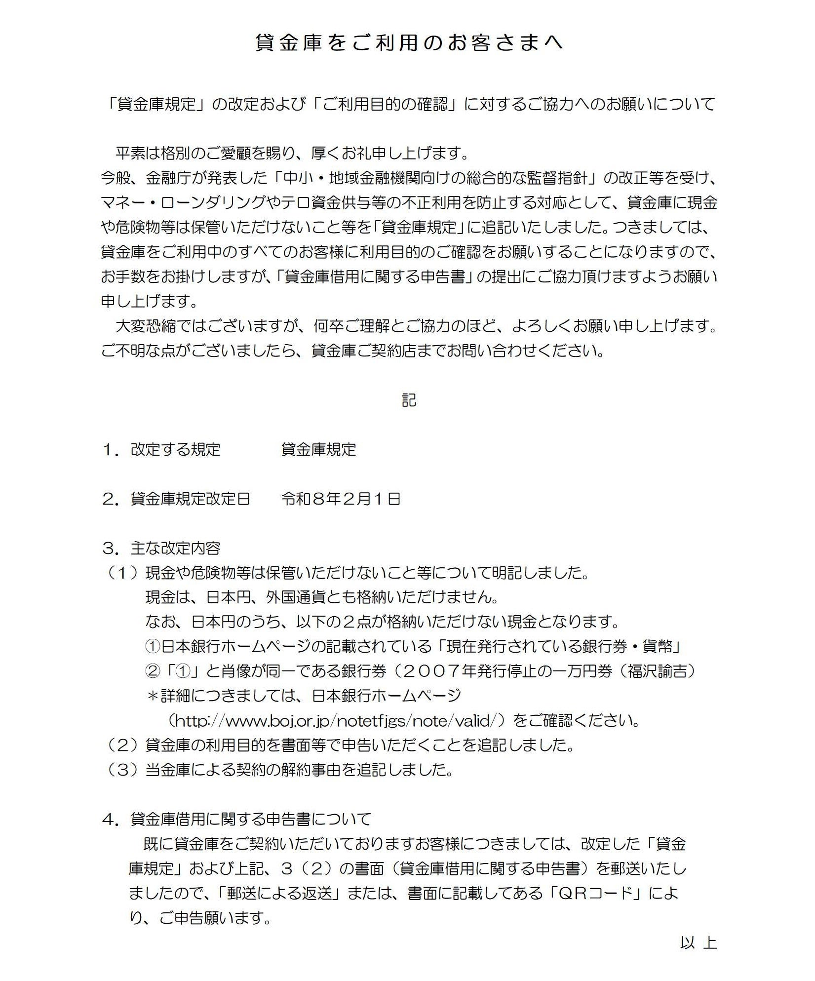 「貸金庫規定」の改定および「ご利用目的の確認」に対するご協力へのお願いについて